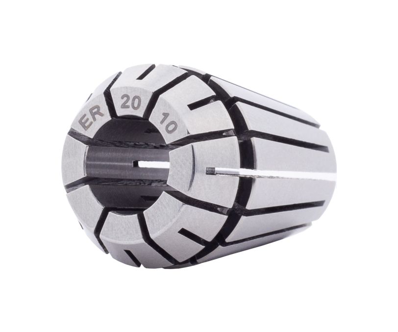 Цанга ER20-10 (DIN 6499B, ISO 15488-B) предназначена для фиксации осевого инструмента с диаметром хвостовика 9,1 ... 10 мм, применяется совместно с патронами типа ER. Сквозное отверстие позволяет размещать инструмент, длина которого превышает высоту цанги. Зажимное усилие на хвостовик инструмента осуществляется в двух зонах, что обеспечивает надежное крепление инструмента и существенное снижает радиальное биение в процессе эксплуатации.