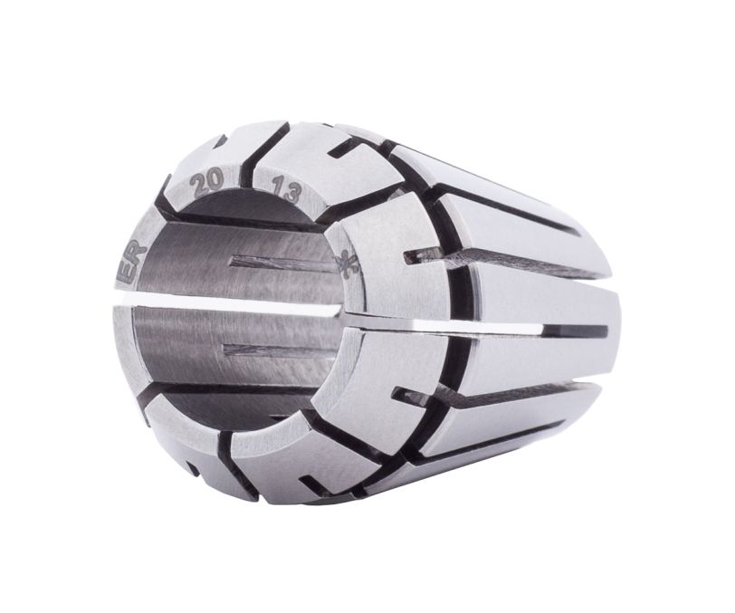 Цанга ER20-13 (DIN 6499B, ISO 15488-B) предназначена для фиксации осевого инструмента с диаметром хвостовика 12,1 ... 13 мм, применяется совместно с патронами типа ER. Сквозное отверстие позволяет размещать инструмент, длина которого превышает высоту цанги. Зажимное усилие на хвостовик инструмента осуществляется в двух зонах, что обеспечивает надежное крепление инструмента и существенное снижает радиальное биение в процессе эксплуатации.