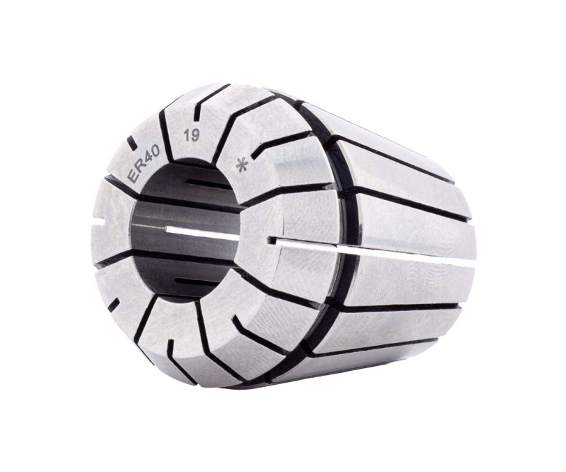 Цанга ER40-19 (DIN 6499B, ISO 15488-B) предназначена для фиксации осевого инструмента с диаметром хвостовика 18,1 ... 19 мм, применяется совместно с патронами типа ER. Сквозное отверстие позволяет размещать инструмент, длина которого превышает высоту цанги. Зажимное усилие на хвостовик инструмента осуществляется в двух зонах, что обеспечивает надежное крепление инструмента и существенное снижает радиальное биение в процессе эксплуатации.