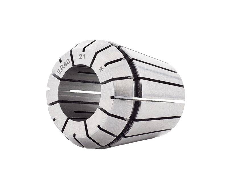 Цанга ER40-21 (DIN 6499B, ISO 15488-B) предназначена для фиксации осевого инструмента с диаметром хвостовика 20,1 ... 21 мм, применяется совместно с патронами типа ER. Сквозное отверстие позволяет размещать инструмент, длина которого превышает высоту цанги. Зажимное усилие на хвостовик инструмента осуществляется в двух зонах, что обеспечивает надежное крепление инструмента и существенное снижает радиальное биение в процессе эксплуатации.