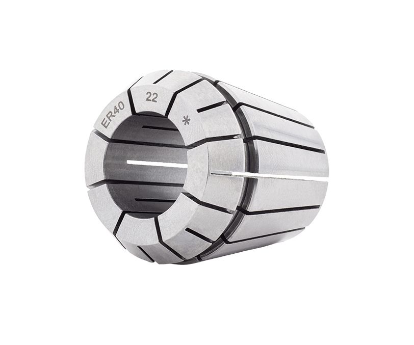 Цанга ER40-22 (DIN 6499B, ISO 15488-B) предназначена для фиксации осевого инструмента с диаметром хвостовика 21,1 ... 22 мм, применяется совместно с патронами типа ER. Сквозное отверстие позволяет размещать инструмент, длина которого превышает высоту цанги. Зажимное усилие на хвостовик инструмента осуществляется в двух зонах, что обеспечивает надежное крепление инструмента и существенное снижает радиальное биение в процессе эксплуатации.