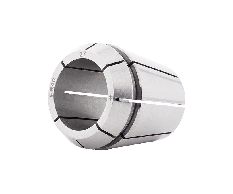 Цанга ER40-27 (DIN 6499B, ISO 15488-B) предназначена для фиксации осевого инструмента с диаметром хвостовика 26,1 ... 27 мм, применяется совместно с патронами типа ER. Сквозное отверстие позволяет размещать инструмент, длина которого превышает высоту цанги. Зажимное усилие на хвостовик инструмента осуществляется в двух зонах, что обеспечивает надежное крепление инструмента и существенное снижает радиальное биение в процессе эксплуатации.