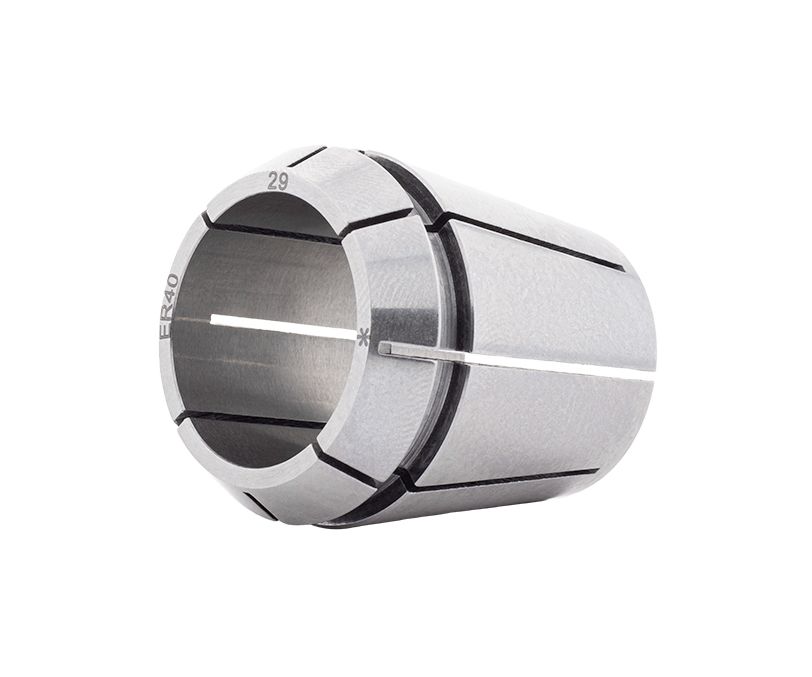 Цанга ER40-29 (DIN 6499B, ISO 15488-B) предназначена для фиксации осевого инструмента с диаметром хвостовика 28,1 ... 29 мм, применяется совместно с патронами типа ER. Сквозное отверстие позволяет размещать инструмент, длина которого превышает высоту цанги. Зажимное усилие на хвостовик инструмента осуществляется в двух зонах, что обеспечивает надежное крепление инструмента и существенное снижает радиальное биение в процессе эксплуатации.