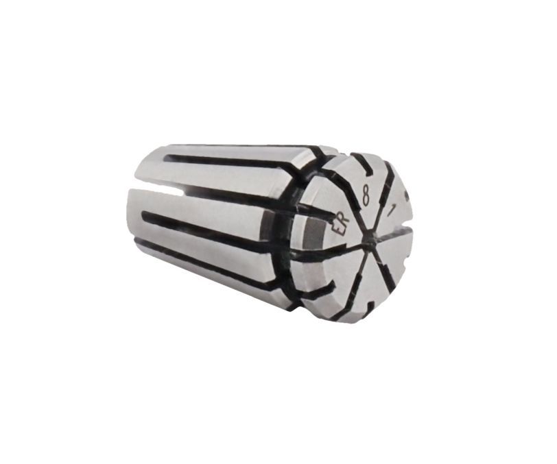 Цанга ER8-1 (DIN 6499B, ISO 15488-B) предназначена для фиксации осевого инструмента с диаметром хвостовика 0,6 ... 1 мм, применяется совместно с патронами типа ER. Сквозное отверстие позволяет размещать инструмент, длина которого превышает высоту цанги. Зажимное усилие на хвостовик инструмента осуществляется в двух зонах, что обеспечивает надежное крепление инструмента и существенное снижает радиальное биение в процессе эксплуатации.