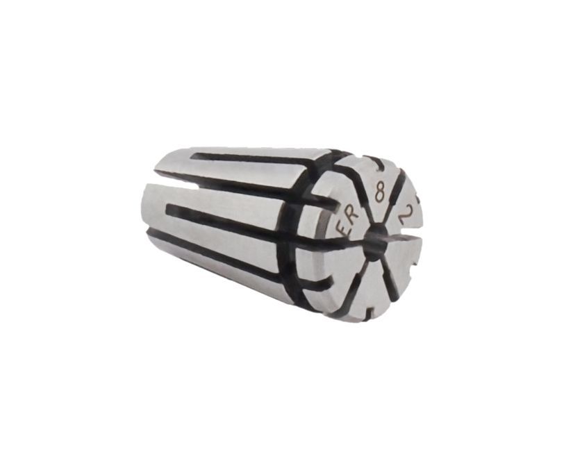 Цанга ER8-2 (DIN 6499B, ISO 15488-B) предназначена для фиксации осевого инструмента с диаметром хвостовика 1,6 ... 2 мм, применяется совместно с патронами типа ER. Сквозное отверстие позволяет размещать инструмент, длина которого превышает высоту цанги. Зажимное усилие на хвостовик инструмента осуществляется в двух зонах, что обеспечивает надежное крепление инструмента и существенное снижает радиальное биение в процессе эксплуатации.