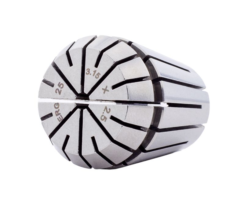 Резьбонарезная цанга ER25G-3,15x2,5 предназначена для фиксации машинно-ручных метчиков с диаметром хвостовика 3,15 мм и размером квадрата 2,5 мм (стандарт ISO), используется для нарезания резьбы М3 в отверстиях.