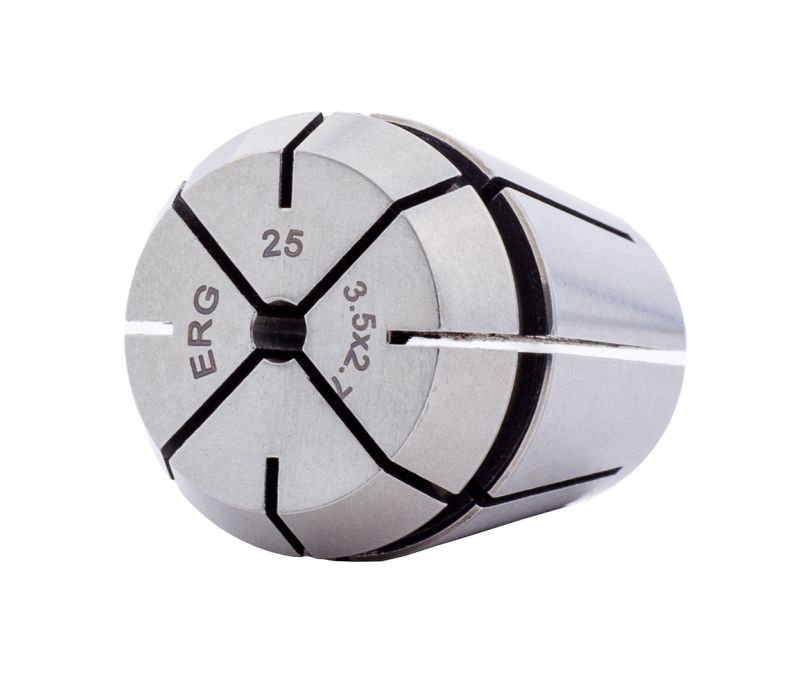 Резьбонарезная цанга ER25G-3,5x2,7 предназначена для фиксации машинно-ручных метчиков с диаметром хвостовика 3,5 мм и размером квадрата 2,7 мм (стандарт DIN371), используется для нарезания резьбы М3 в отверстиях.
