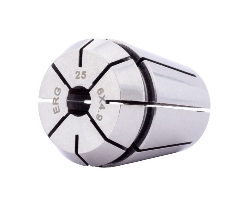 Резьбонарезная цанга ER25G-6x4,9 предназначена для фиксации машинно-ручных метчиков с диаметром хвостовика 6 мм и размером квадрата 4,9 мм (стандарт DIN371), используется для нарезания резьбы М6 в отверстиях.