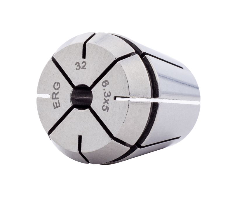 Резьбонарезная цанга ER32G-6,3x5 предназначена для фиксации машинно-ручных метчиков с диаметром хвостовика 6,3 мм и размером квадрата 5 мм (стандарт ISO), используется для нарезания резьбы М6 в отверстиях.