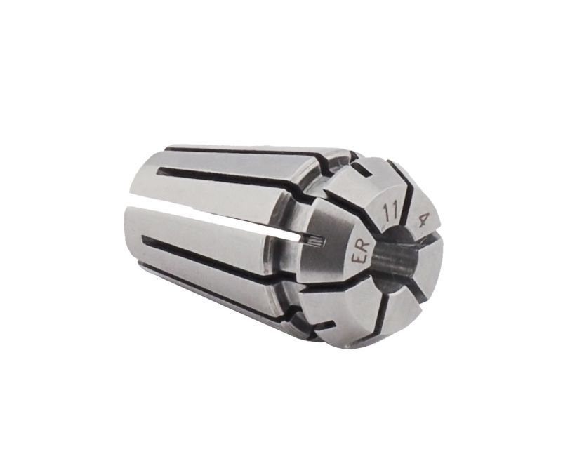 Цанга прецизионная ER11AA-4 (DIN 6499B, ISO 15488-B) предназначена для фиксации осевого инструмента с диаметром хвостовика 3,6 ... 4 мм, применяется совместно с патронами типа ER. Сквозное отверстие позволяет размещать инструмент, длина которого превышает высоту цанги. Зажимное усилие на хвостовик инструмента осуществляется в двух зонах, что обеспечивает надежное крепление инструмента и существенное снижает радиальное биение в процессе эксплуатации.