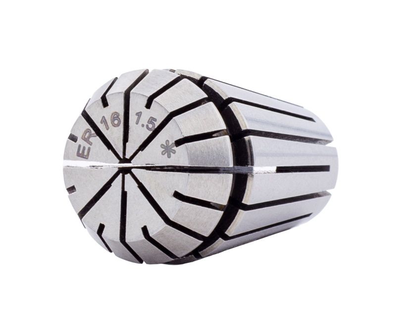 Цанга прецизионная ER16AA-1,5 (DIN 6499B, ISO 15488-B) предназначена для фиксации осевого инструмента с диаметром хвостовика 1,1 ... 1,5 мм, применяется совместно с патронами типа ER. Сквозное отверстие позволяет размещать инструмент, длина которого превышает высоту цанги. Зажимное усилие на хвостовик инструмента осуществляется в двух зонах, что обеспечивает надежное крепление инструмента и существенное снижает радиальное биение в процессе эксплуатации.