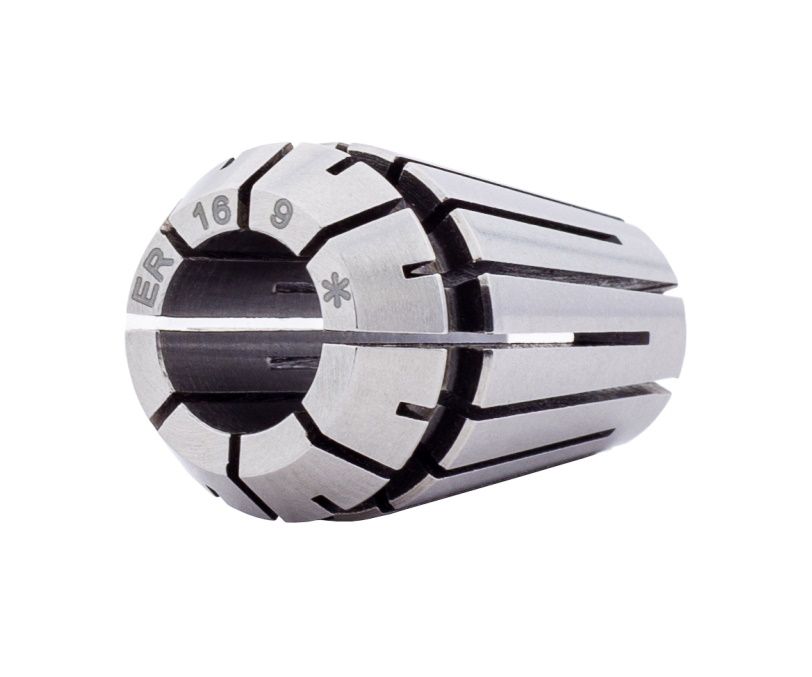 Цанга прецизионная ER16AA-9 (DIN 6499B, ISO 15488-B) предназначена для фиксации осевого инструмента с диаметром хвостовика 8,1 ... 9 мм, применяется совместно с патронами типа ER. Сквозное отверстие позволяет размещать инструмент, длина которого превышает высоту цанги. Зажимное усилие на хвостовик инструмента осуществляется в двух зонах, что обеспечивает надежное крепление инструмента и существенное снижает радиальное биение в процессе эксплуатации.