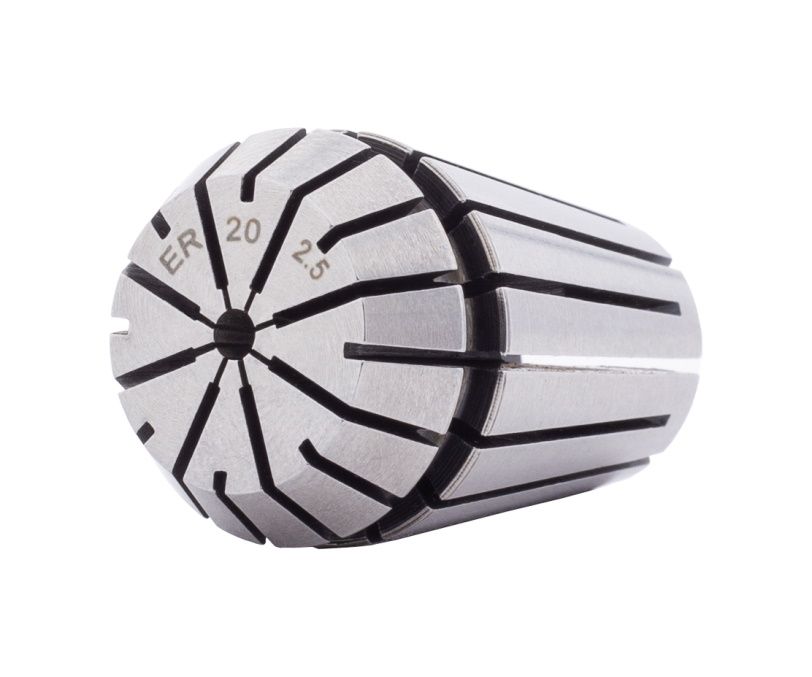 Цанга прецизионная ER20AA-2,5 (DIN 6499B, ISO 15488-B) предназначена для фиксации осевого инструмента с диаметром хвостовика 2,1 ... 2,5 мм, применяется совместно с патронами типа ER. Сквозное отверстие позволяет размещать инструмент, длина которого превышает высоту цанги. Зажимное усилие на хвостовик инструмента осуществляется в двух зонах, что обеспечивает надежное крепление инструмента и существенное снижает радиальное биение в процессе эксплуатации.