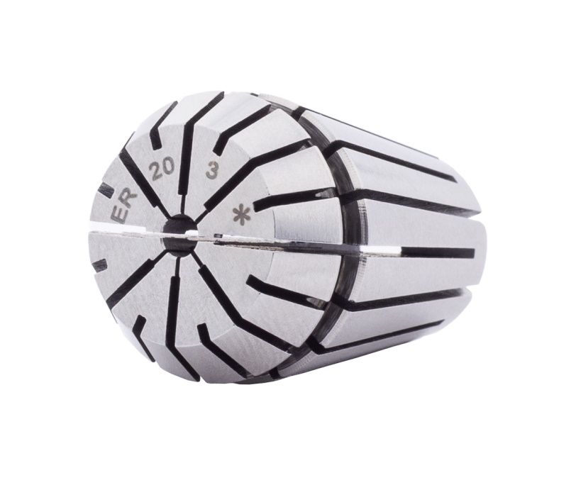 Цанга прецизионная ER20AA-3 (DIN 6499B, ISO 15488-B) предназначена для фиксации осевого инструмента с диаметром хвостовика 2,1 ... 3 мм, применяется совместно с патронами типа ER. Сквозное отверстие позволяет размещать инструмент, длина которого превышает высоту цанги. Зажимное усилие на хвостовик инструмента осуществляется в двух зонах, что обеспечивает надежное крепление инструмента и существенное снижает радиальное биение в процессе эксплуатации.