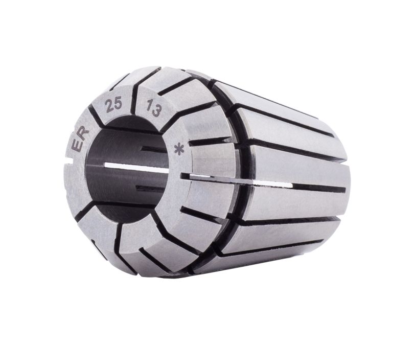 Цанга прецизионная ER25AA-13 (DIN 6499B, ISO 15488-B) предназначена для фиксации осевого инструмента с диаметром хвостовика 12,1 ... 13 мм, применяется совместно с патронами типа ER. Сквозное отверстие позволяет размещать инструмент, длина которого превышает высоту цанги. Зажимное усилие на хвостовик инструмента осуществляется в двух зонах, что обеспечивает надежное крепление инструмента и существенное снижает радиальное биение в процессе эксплуатации.