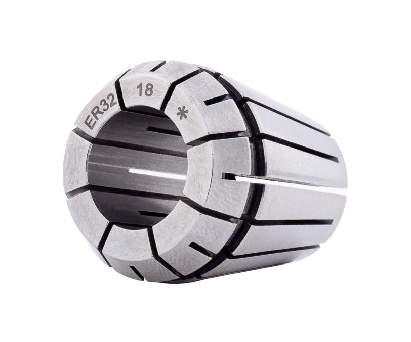 Цанга прецизионная ER32AA-18 (DIN 6499B, ISO 15488-B) предназначена для фиксации осевого инструмента с диаметром хвостовика 17,1 ... 18 мм, применяется совместно с патронами типа ER. Сквозное отверстие позволяет размещать инструмент, длина которого превышает высоту цанги. Зажимное усилие на хвостовик инструмента осуществляется в двух зонах, что обеспечивает надежное крепление инструмента и существенное снижает радиальное биение в процессе эксплуатации.