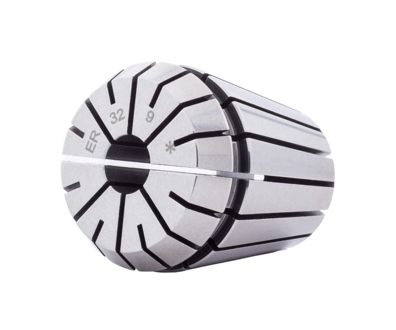 Цанга прецизионная ER32AA-9 (DIN 6499B, ISO 15488-B) предназначена для фиксации осевого инструмента с диаметром хвостовика 8,1 ... 9 мм, применяется совместно с патронами типа ER. Сквозное отверстие позволяет размещать инструмент, длина которого превышает высоту цанги. Зажимное усилие на хвостовик инструмента осуществляется в двух зонах, что обеспечивает надежное крепление инструмента и существенное снижает радиальное биение в процессе эксплуатации.