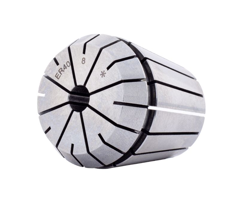 Цанга прецизионная ER40AA-8 (DIN 6499B, ISO 15488-B) предназначена для фиксации осевого инструмента с диаметром хвостовика 7,1 ... 8 мм, применяется совместно с патронами типа ER. Сквозное отверстие позволяет размещать инструмент, длина которого превышает высоту цанги. Зажимное усилие на хвостовик инструмента осуществляется в двух зонах, что обеспечивает надежное крепление инструмента и существенное снижает радиальное биение в процессе эксплуатации.