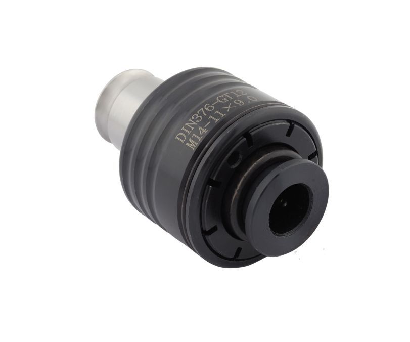 Быстросменная цанга GT12-DIN376-11x9 предназначена для фиксации машинно-ручных метчиков с диаметром хвостовика 11 мм и размером квадрата 9 мм (стандарт DIN376),используется для нарезания резьбы M14 в отверстиях. Встроенная защита от перегрузки с регулировкой момента срабатывания предотвращает поломку инструмента, увеличивая срок службы метчика.