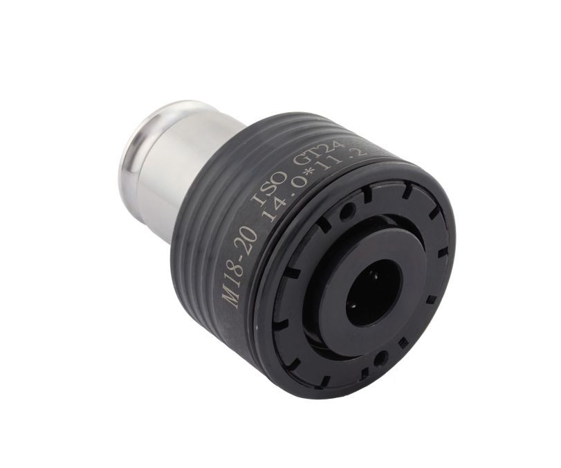 Быстросменная цанга GT24-ISO-14x11,2 предназначена для фиксации машинно-ручных метчиков с диаметром хвостовика 14 мм и размером квадрата 11.2 мм (стандарт ISO),используется для нарезания резьбы M20 в отверстиях. Встроенная защита от перегрузки с регулировкой момента срабатывания предотвращает поломку инструмента, увеличивая срок службы метчика.