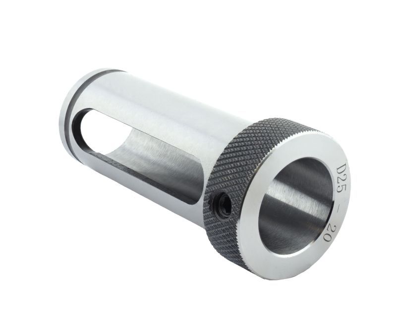 Переходная втулка D25-20-ZA применяется для фиксации металлорежущего инструмента в случае необходимости перехода с одного диаметра на другой. Повышает стабильность и улучшает скорость подачи. Тип хвостовика инструмента - Weldon. Наружный / внутренний диаметр втулки: 25 / 20.